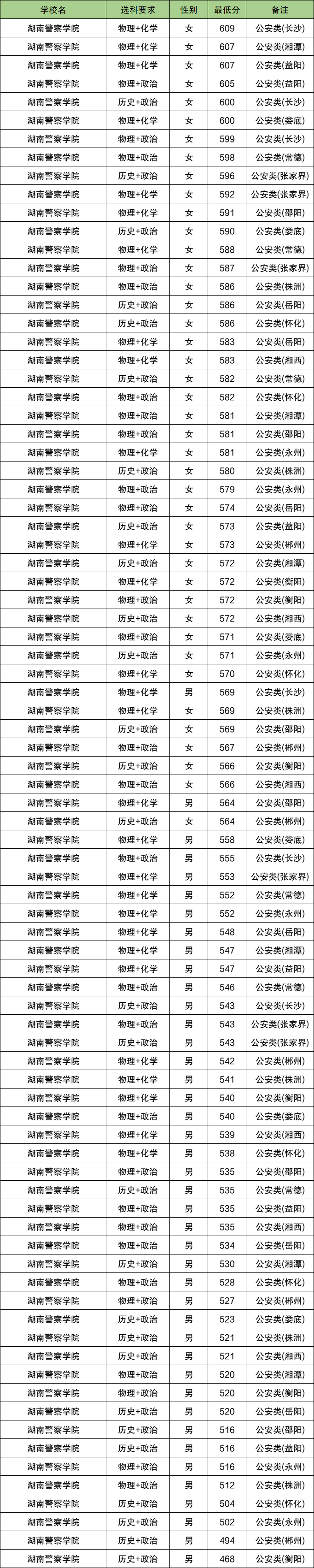 1、湖南警察学院:在湖南历史类最低分468分、物理类最低512分。