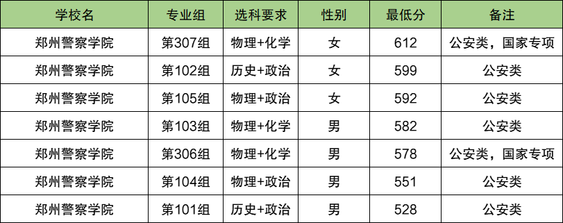 3、郑州警察学院:在湖南历史类最低528分、物理类最低551分。