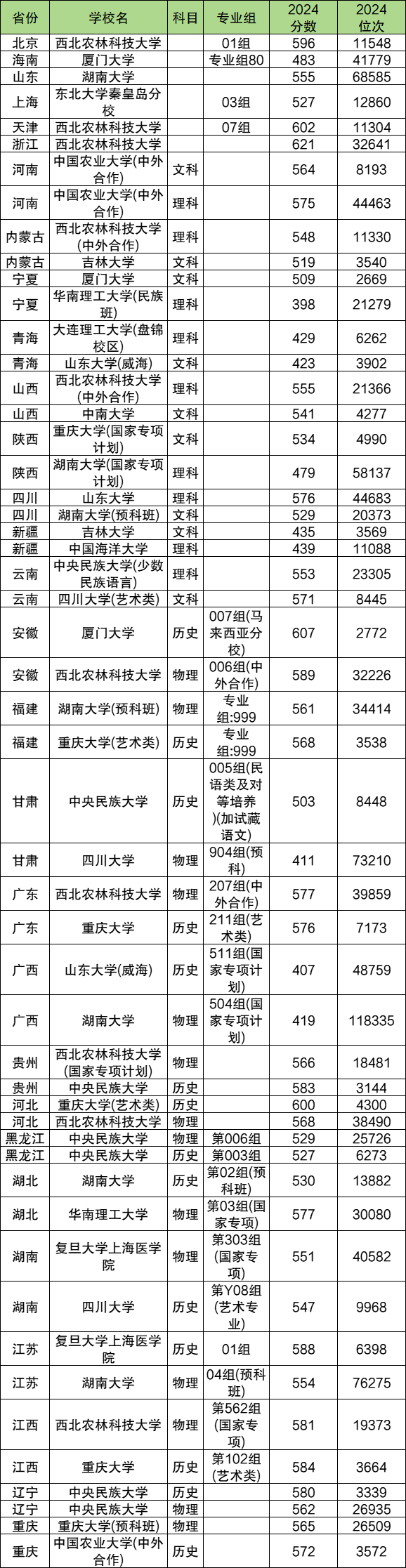 | 省份 | 科目 | 2024分数 | 2024位次 |