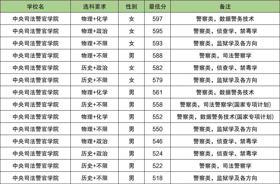 | 湖北警官学院 | 物理+化学 | 男 | 565 |