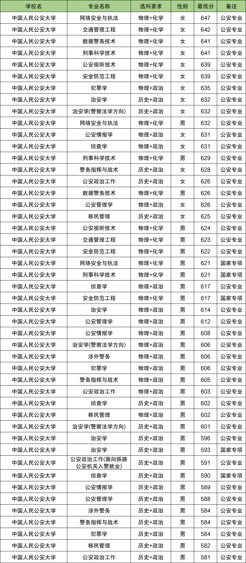 | 中国人民警察大学 | 物理+化学 | 620 |