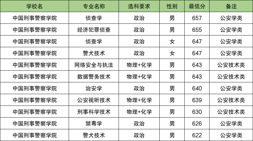 | 中央司法警官学院 | 男 | 619 | 警察类, 司法警察学 |