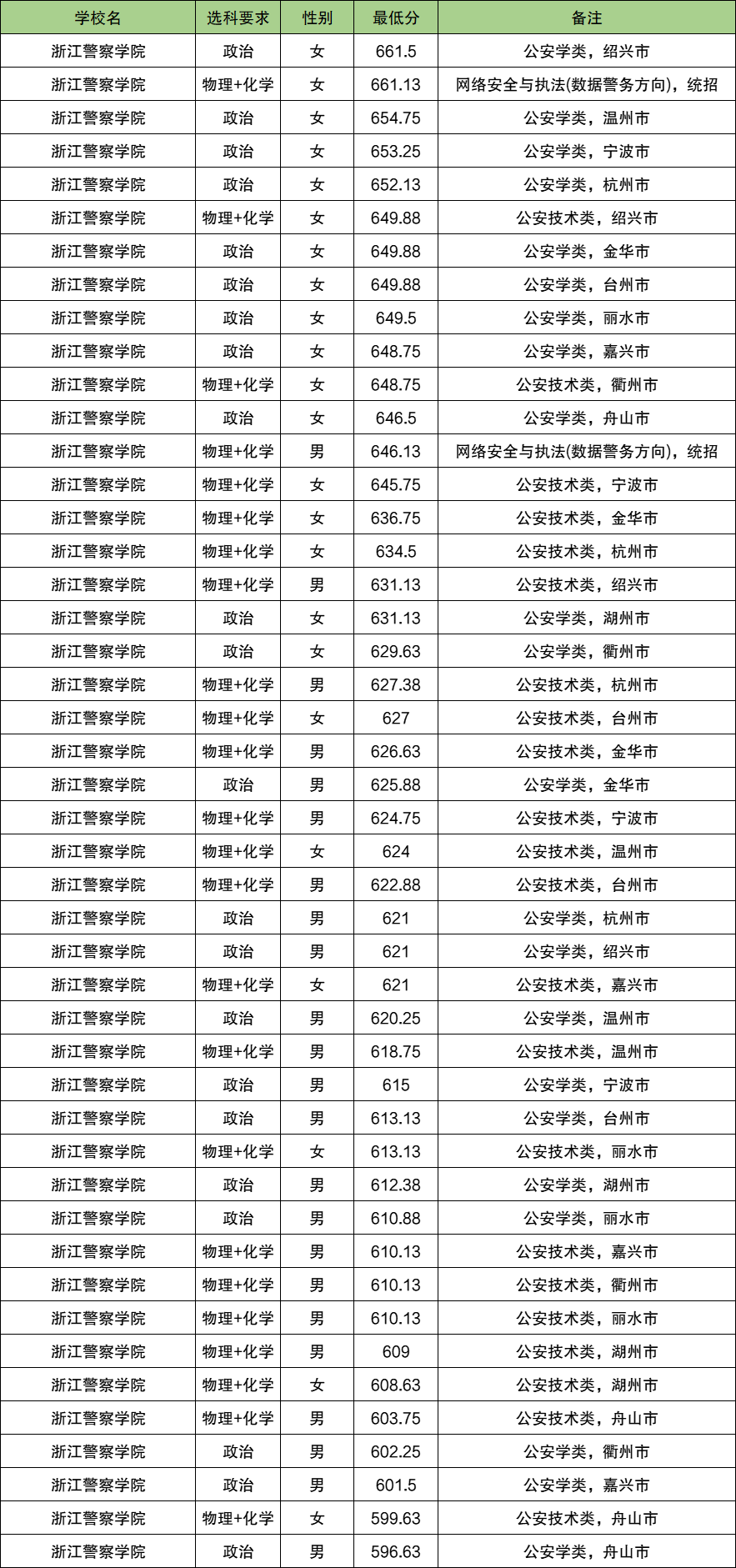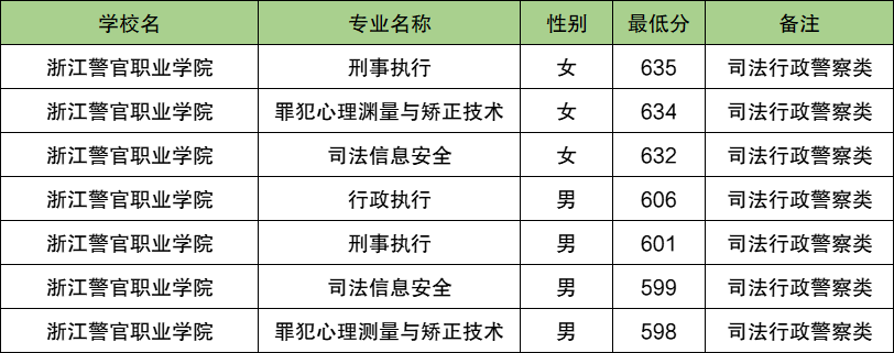 1、浙江警察学院:在浙江最低分596.63分。