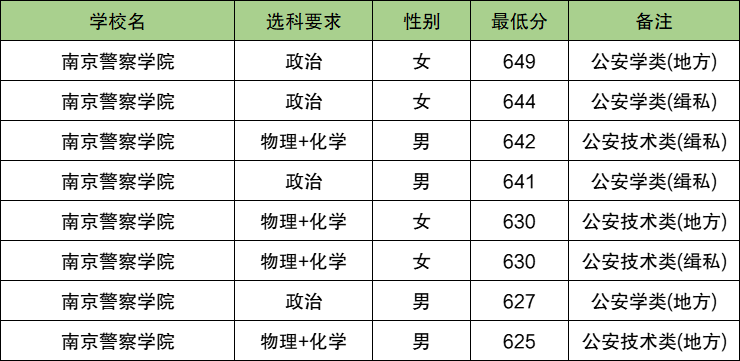 2、南京警察学院:在浙江最低分625分。