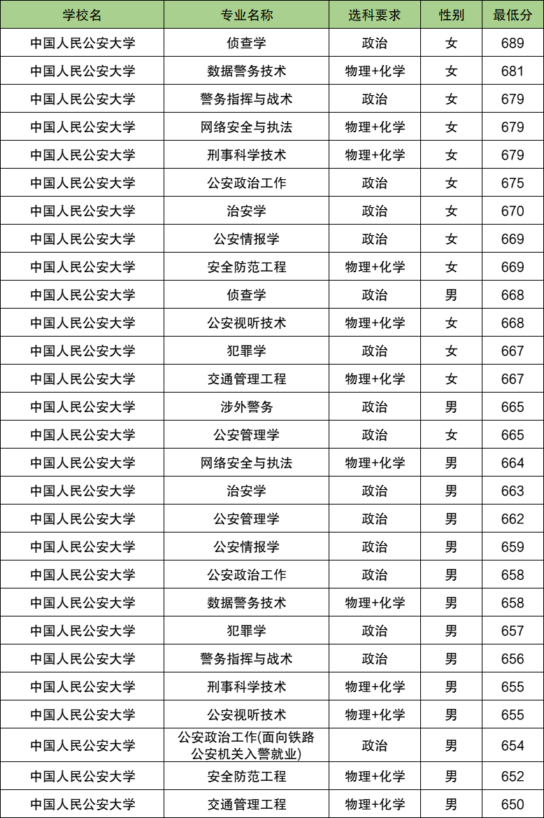 | 云南警官学院 | 禁毒学 | 女 | 648 |