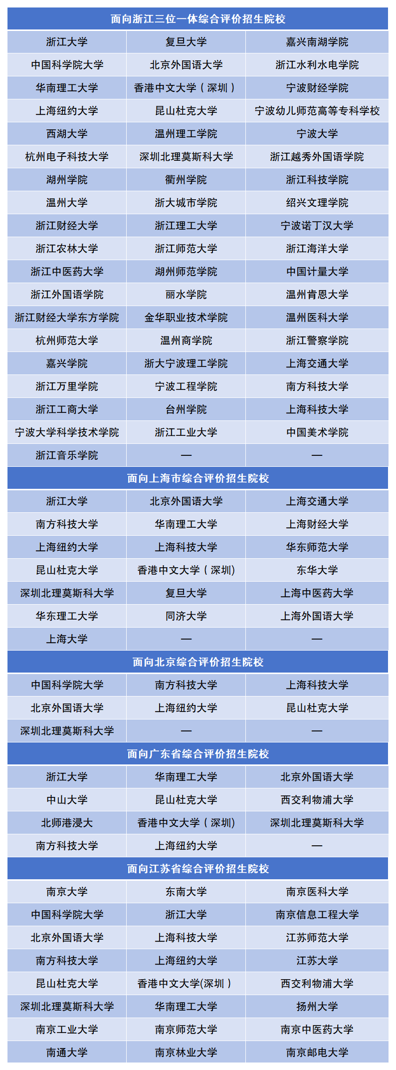 2025年采用综合评价招生的学校依旧分为两大类,面向全国多省招生的院校和面向地方招生的院校。