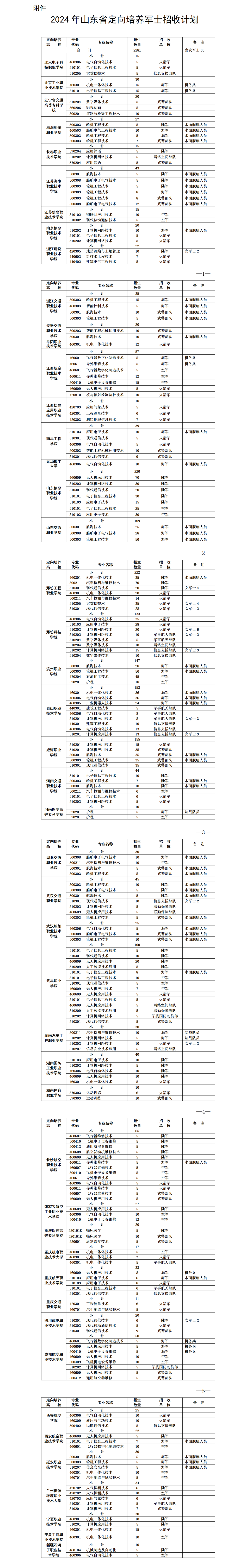 更多院校2024年山东定向士官招生计划详情见下表: