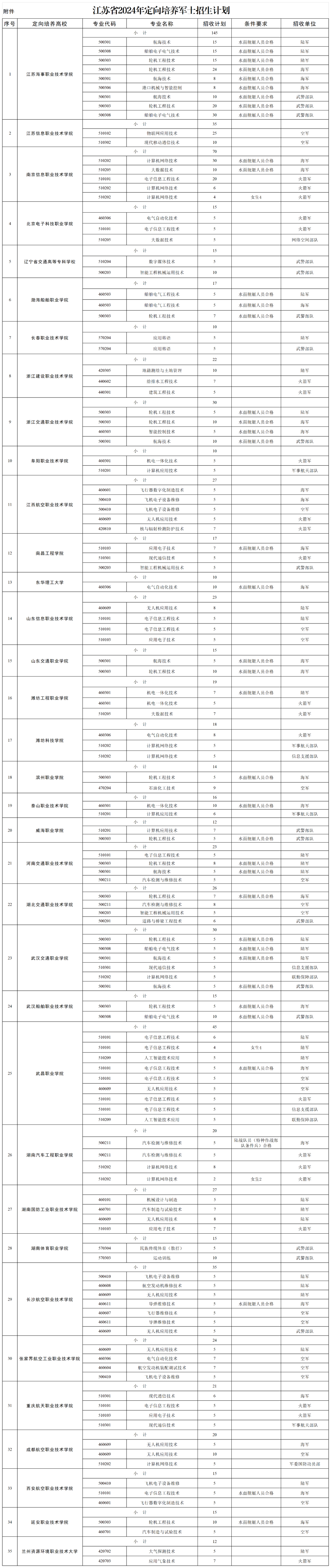 更多院校2024年江苏定向士官招生计划详情见下表: