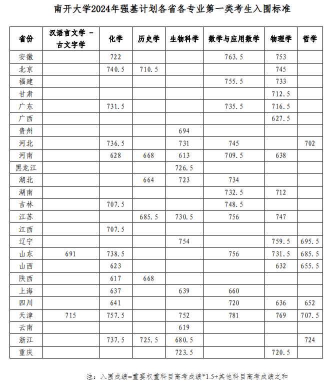 安徽省最低634分、江苏省633分、福建609分、重庆614分、河南611分。重庆大学强基计划各省入围分数线如下: