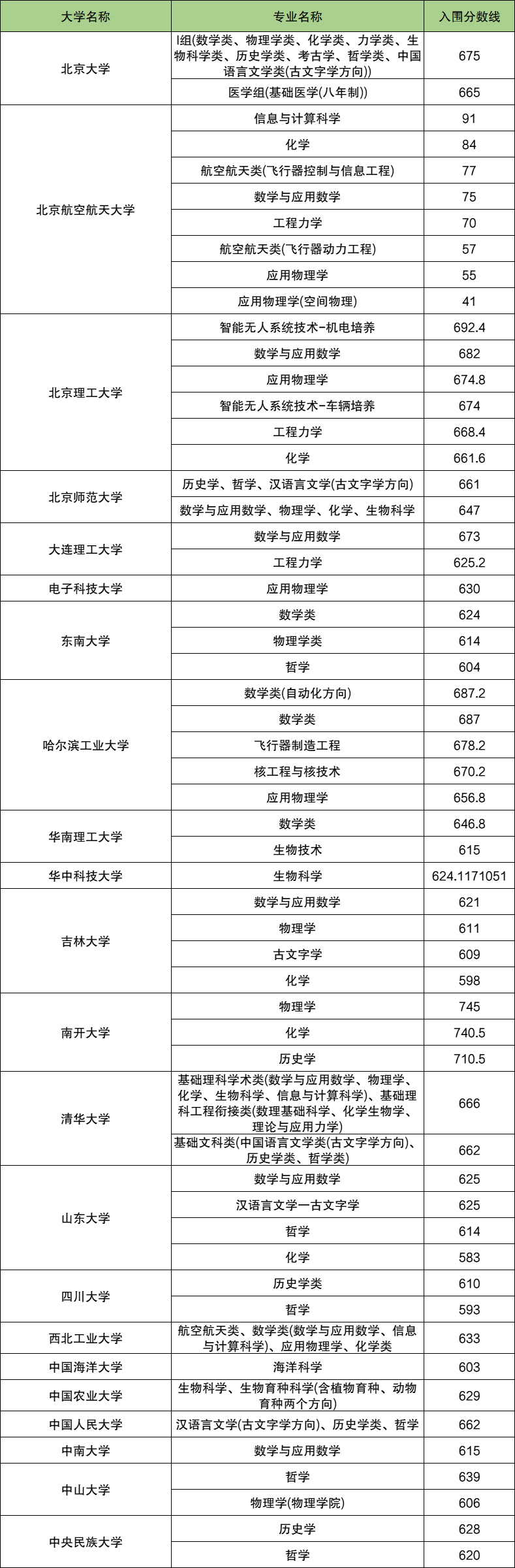其中入围分数线最高的是南开大学的物理学专业,为745分,分数第二高的是南开大学的化学专业,为740.5分