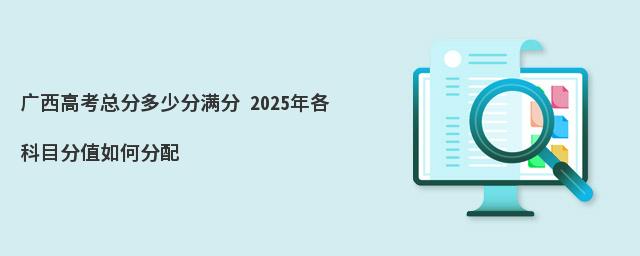 广西高考总分是750分,2025年,广西高考文化统考实行“3+1+2”模式,包括3门全国统考科目和3门选择性考试科目,其中全国统考科目为语文、数学、外语(英语、日语、俄语、德语、法语、西班牙语任选一门)3门,不再分文理科,外语科目考试含听力和笔试两个部分;