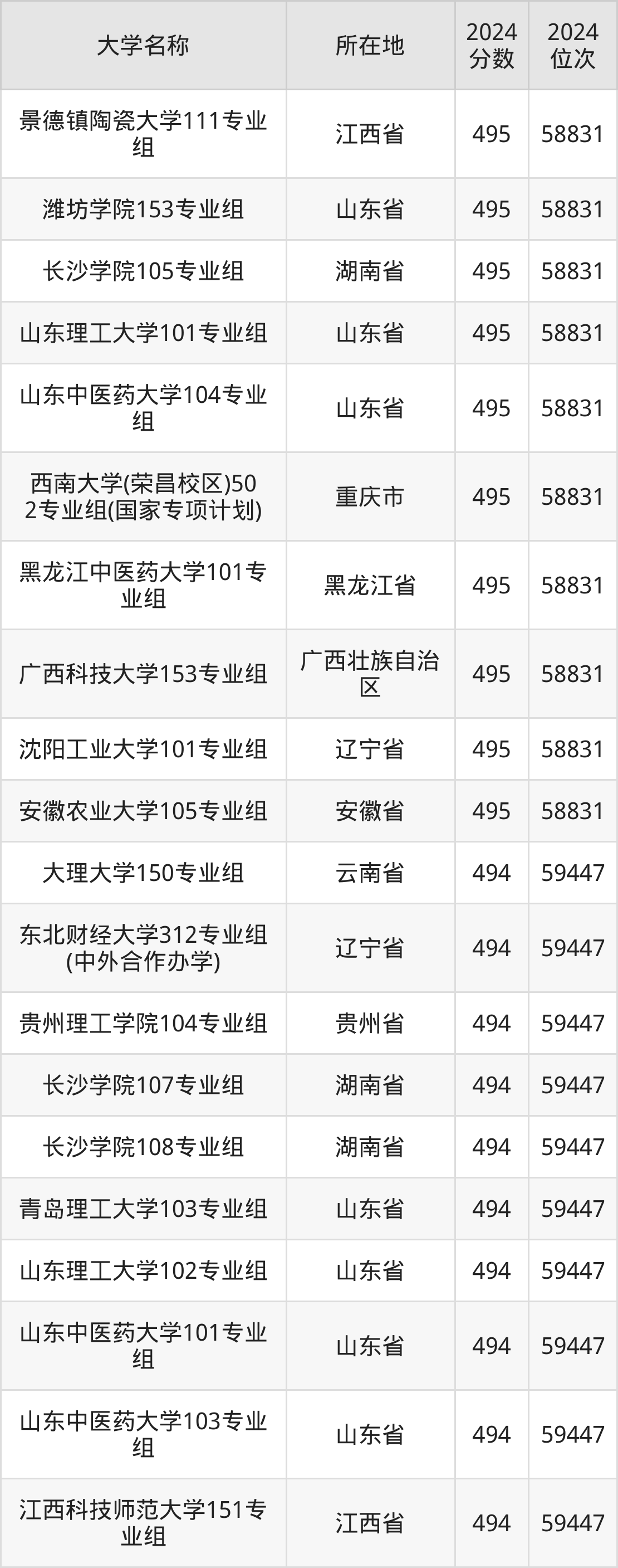 综合上述信息,我们可以清晰地看到,在广西高考物理类,录取位次接近第59000名的院校专业组里: