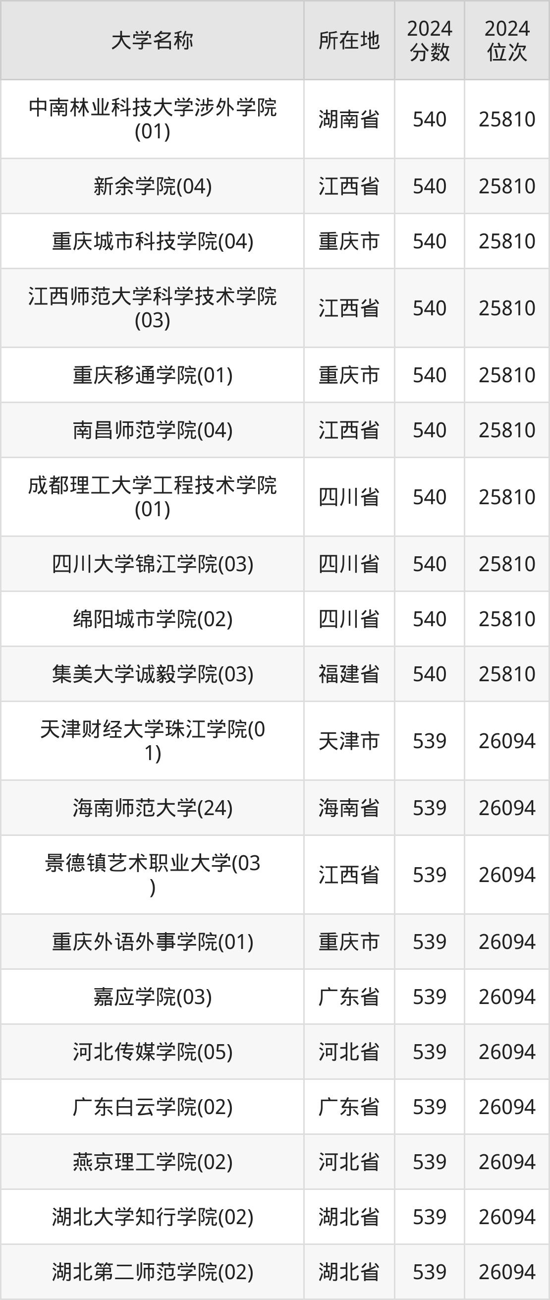 小编依据圆梦志愿平台提供的全国高校在海南省招生录取数据,精心筛选并整理了针对2025年海南考生的一份重要参考:列出了2024年录取位次接近海南省第26000名的大学清单。