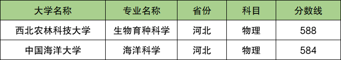 2024年河北省入围分数在580分左右的强基大学共有2所,其中西北农林科技大学对应招生专业为生物育种科学,对应最低入围分数为588分。