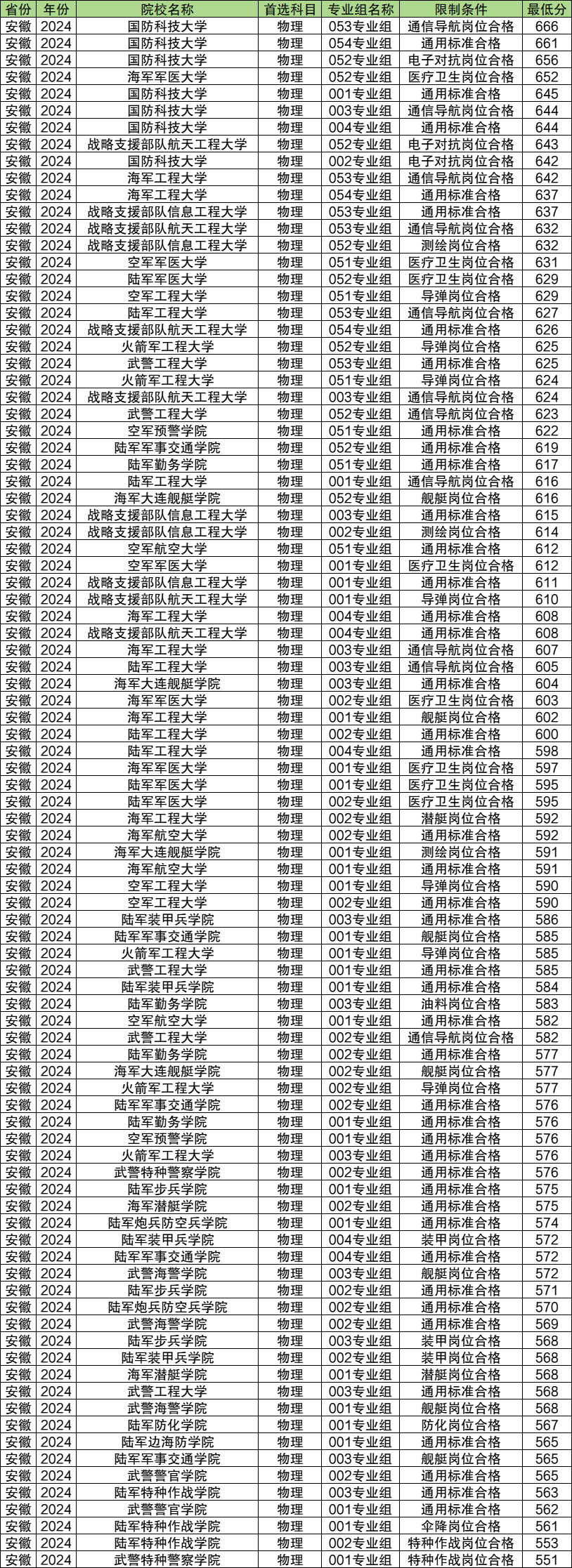 根据各省2024年提前批投档线统计表,为大家整理了各地军校最低分2024汇总。