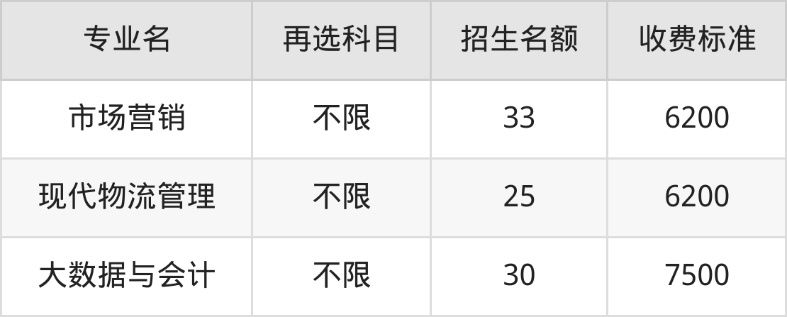 | 高职专科批 | 物理 | 市场营销 | 8 |