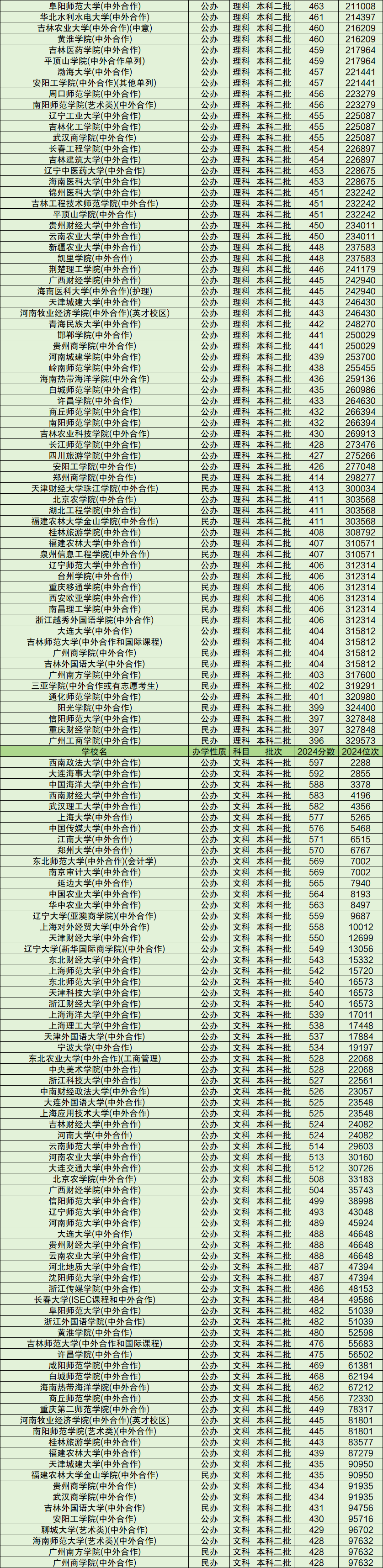 大连海事大学(中外合作),2024年分数线为592分;