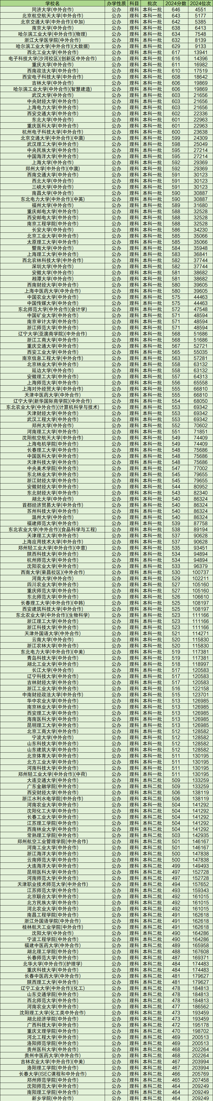 同济大学的中外合作专业,2024年分数线为646分;