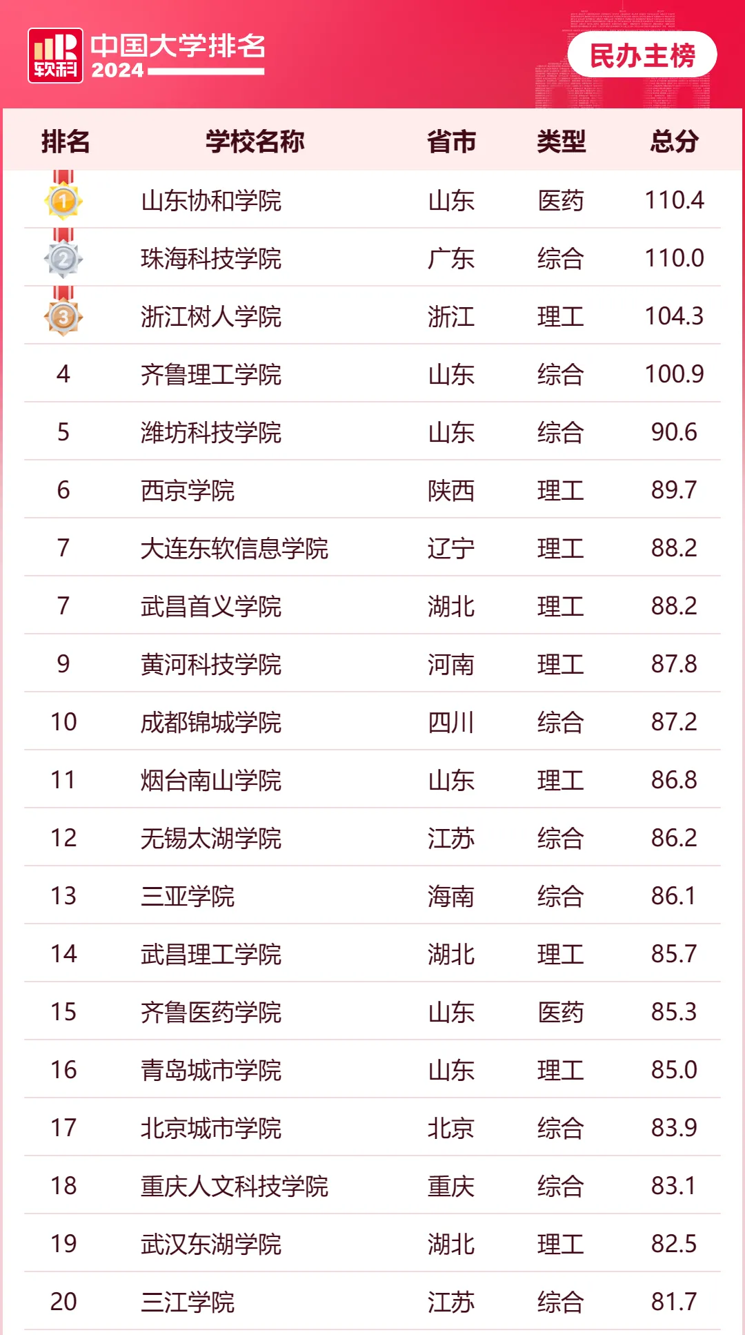 该校在软科榜单中连续两年排在第一位,实力很不错。它拥有国家级和省级一流专业12个,比很多公办院校还厉害。学校的师资队伍也很强,拥有省级教学团队和名师。