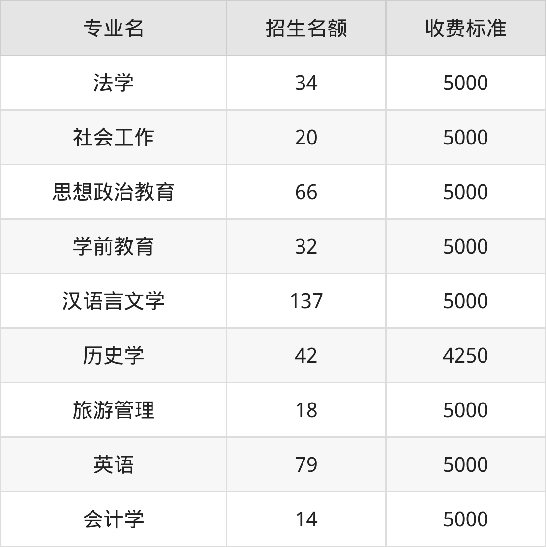榆林学院在文科本科二批招生的各个专业,每年的学费是4250元-5000元。招生人数最多的专业是汉语言文学,2024年招137人,学费是5000元。