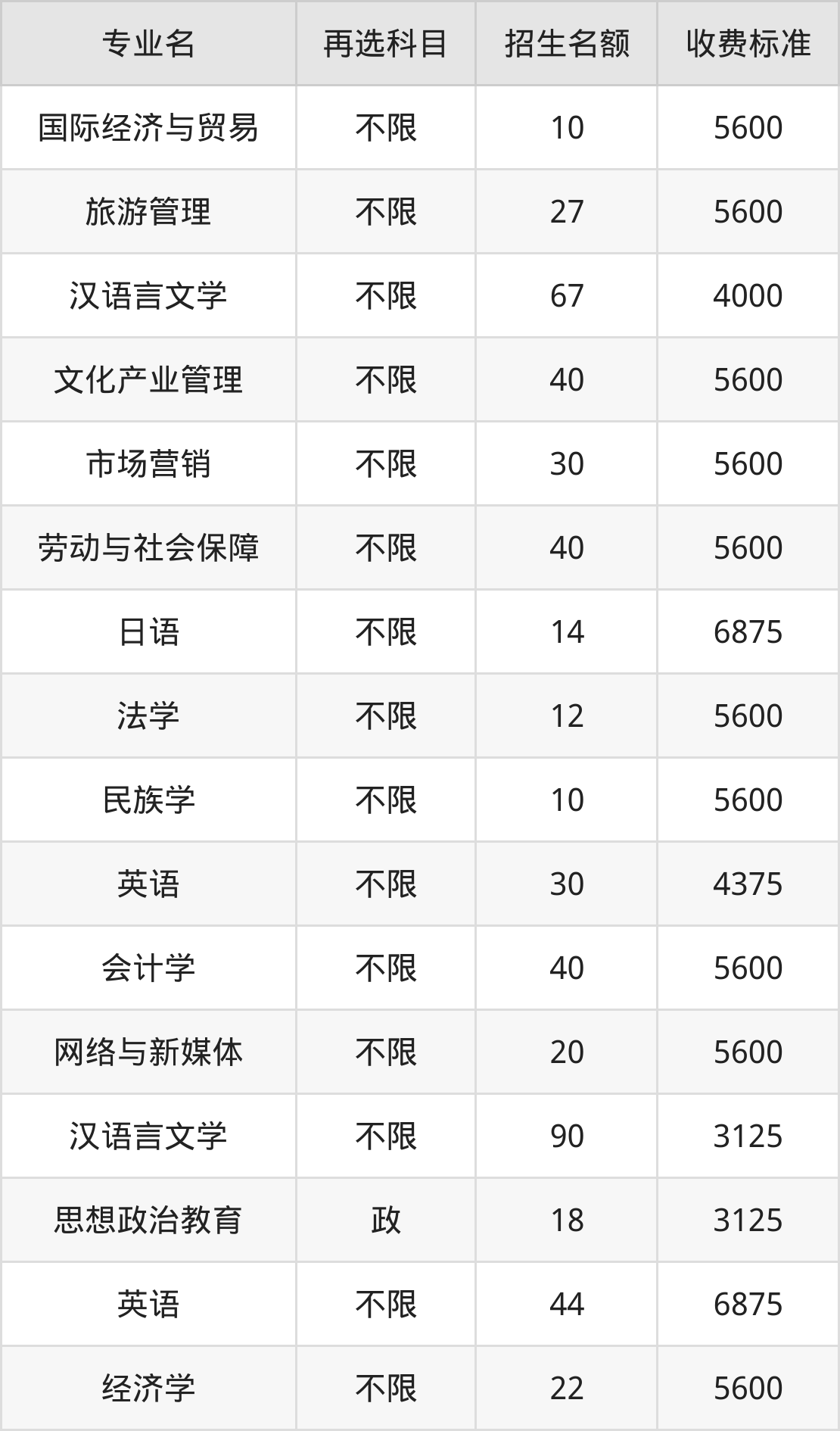 10.国际经济与贸易:学费是5600元