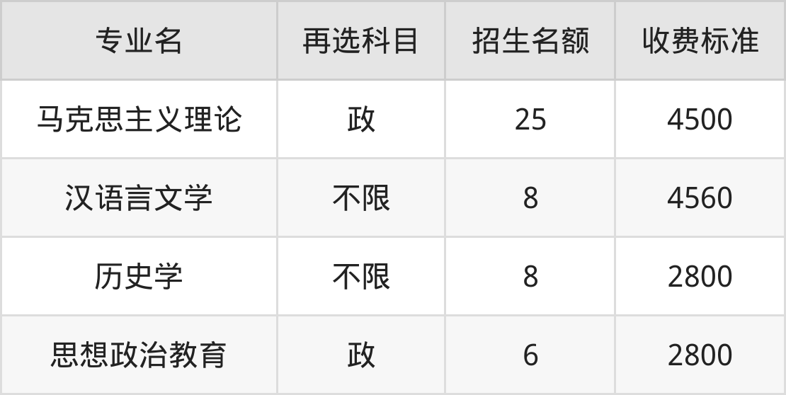 | 本科批 | 历史 | 思想政治教育 | 10 |