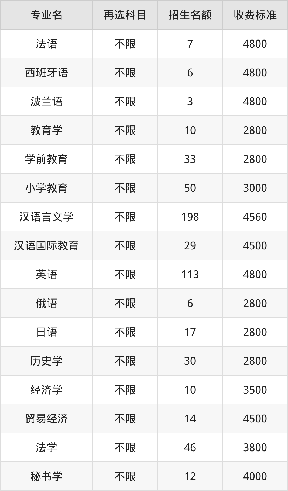 哈尔滨师范大学在历史组本科批招生的各个专业,每年的学费是2800元-8500元。招生人数最多的专业是汉语言文学,2024年招198人,学费是4560元。