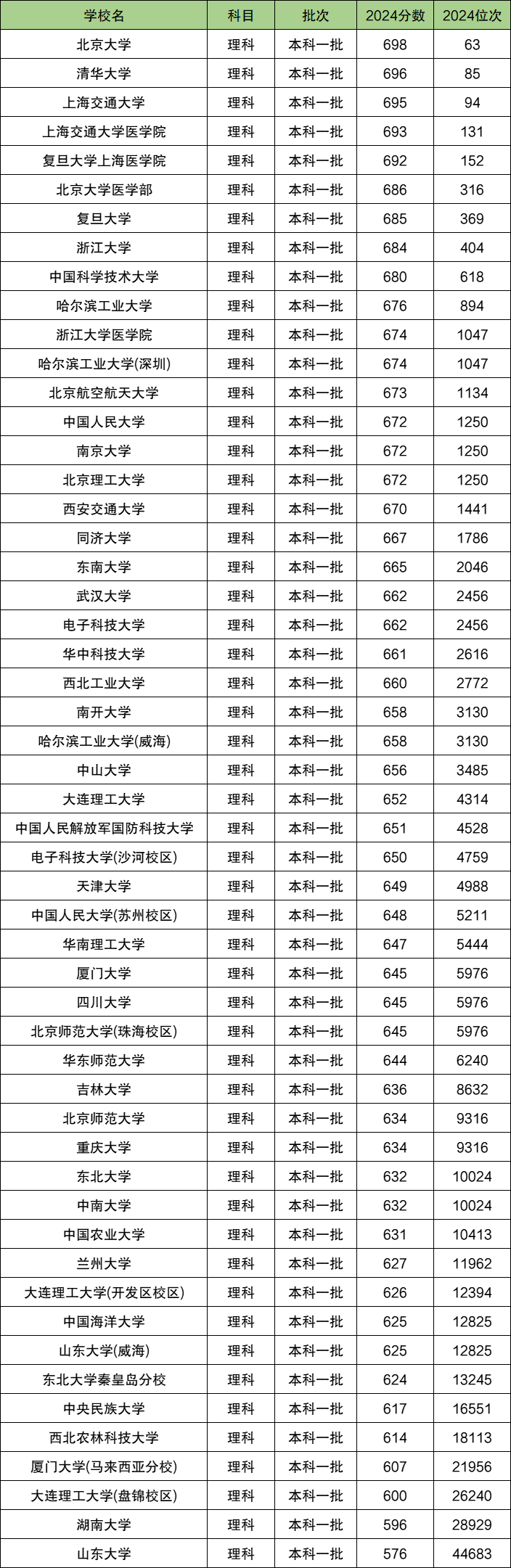 三、985大学最低录取分数线