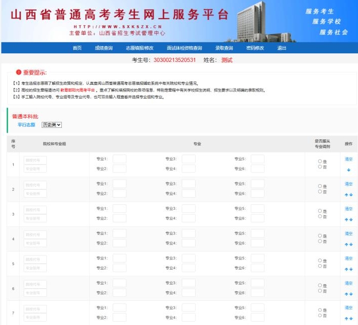 模拟志愿填报直达入口:山西省普通高考考生网上服务平台