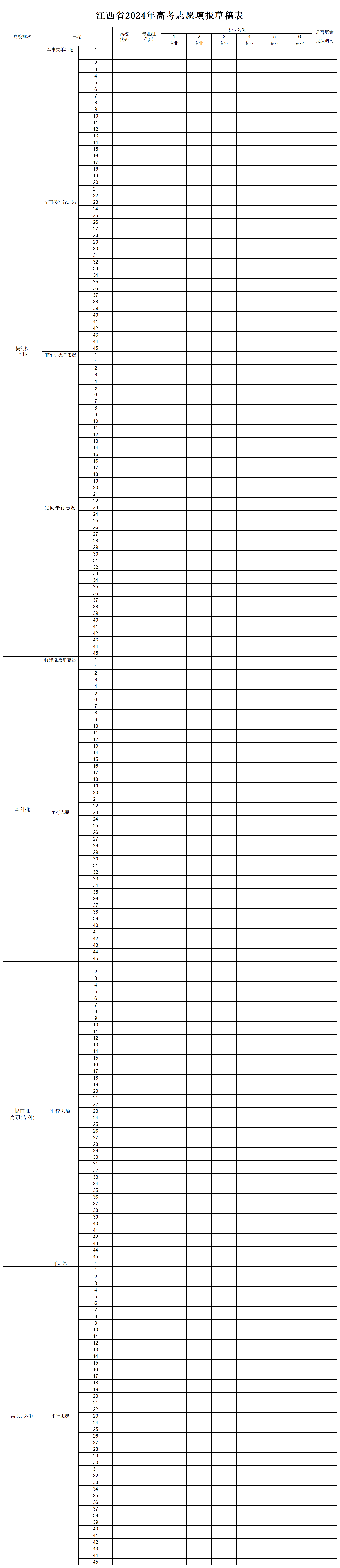 (注:江西2025年高考志愿为院校专业组模式,每个“院校专业组”即为一个独立的志愿,内设6个专业志愿和是否服从专业调剂志愿)
