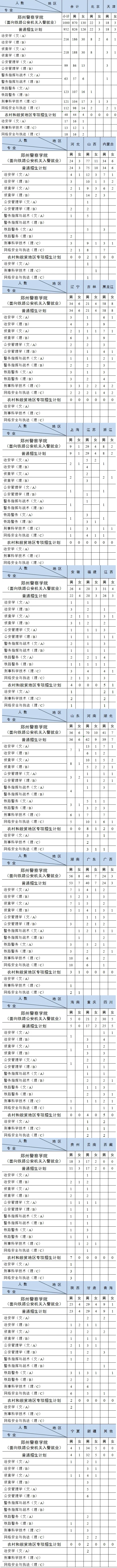 面向地方公安机关就业的相关专业招收227人,只在北京、山西、内蒙古等15个地区招生,具体各专业在各地区的招生计划如下: