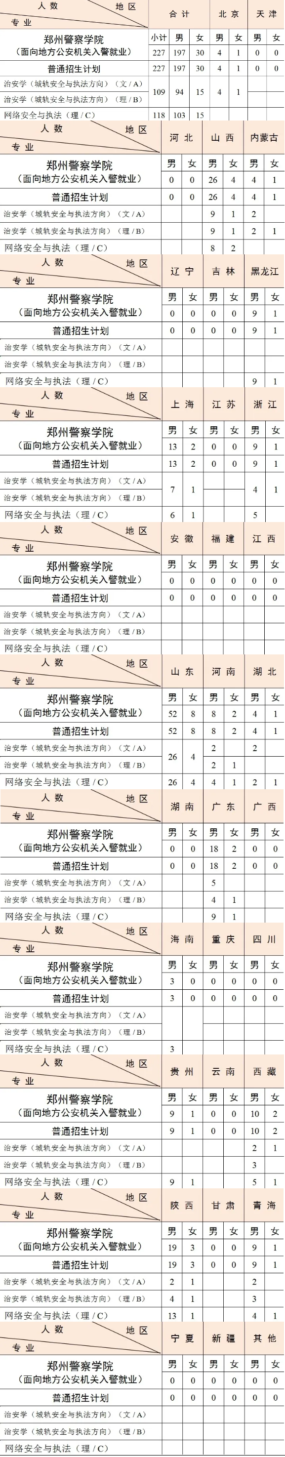 参考上文表格来看,郑州警察学院的招生地区共有30个,除西藏外,所有地区均有招生计划,具体的招生地区如下: