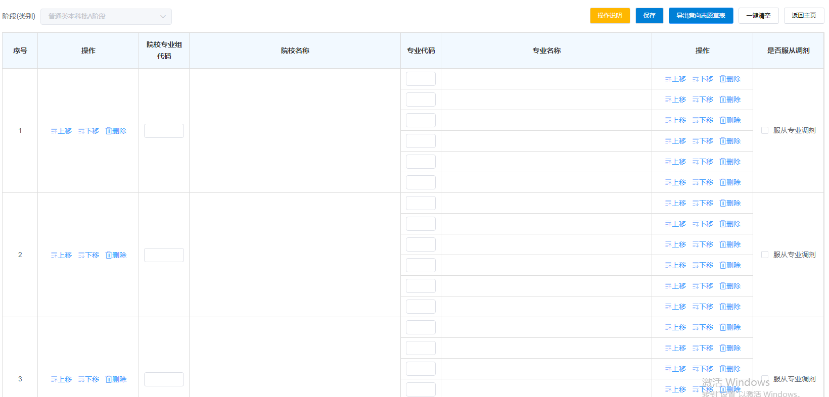 3、高职(专科)批次:20个平行院校志愿,每个院校志愿栏中设置6个专业志愿。