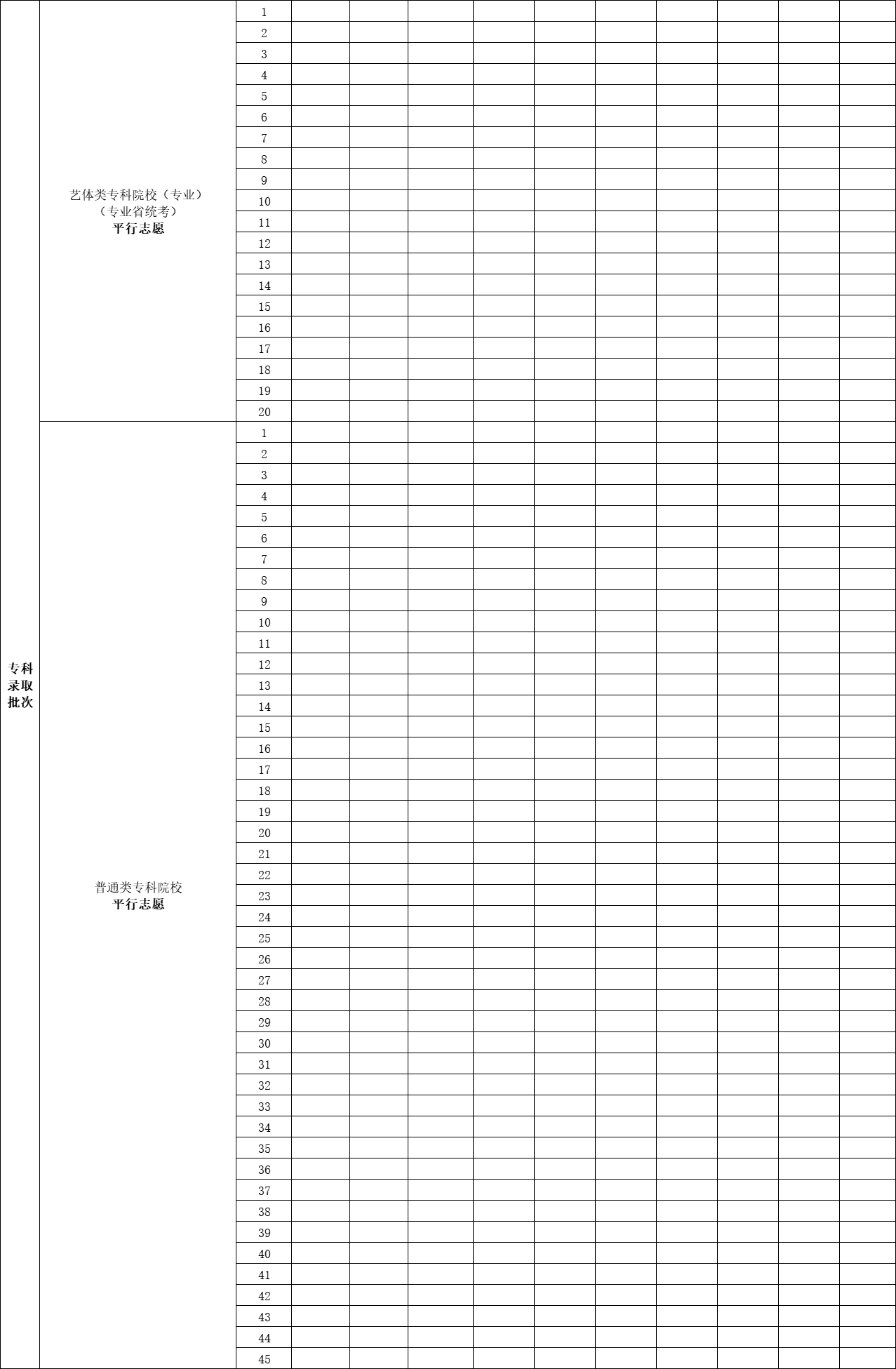 2、高职(专科)批:45个平行专业组志愿。每个院校专业组最多可填6个专业。