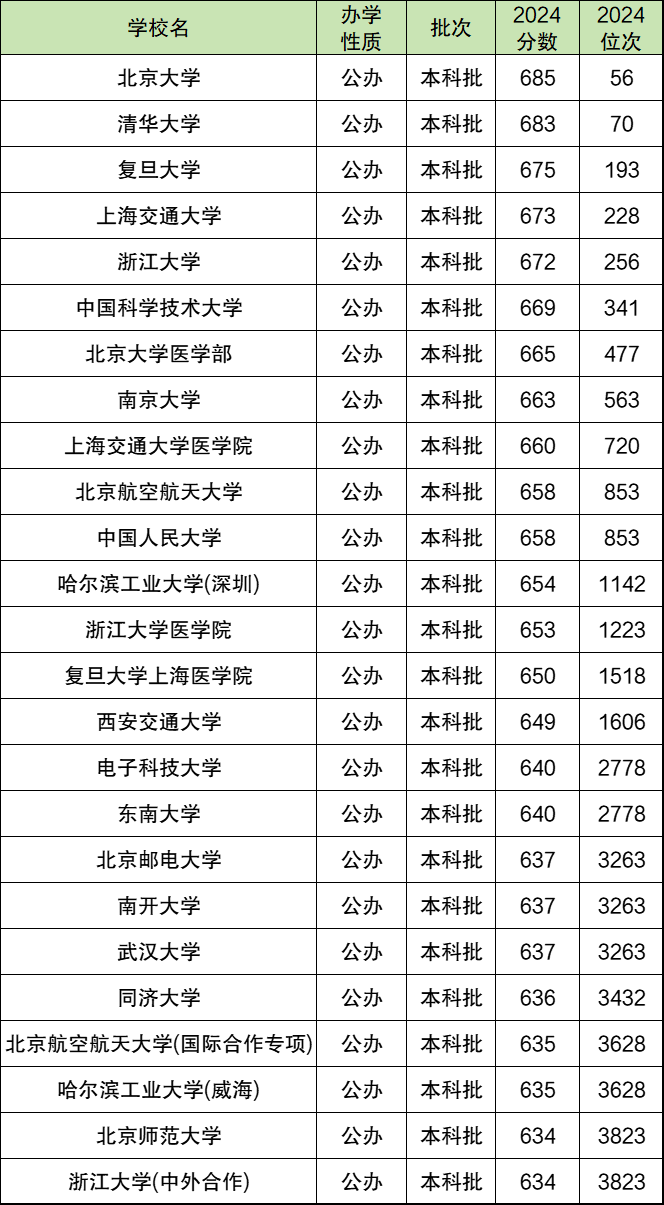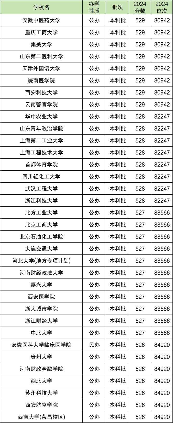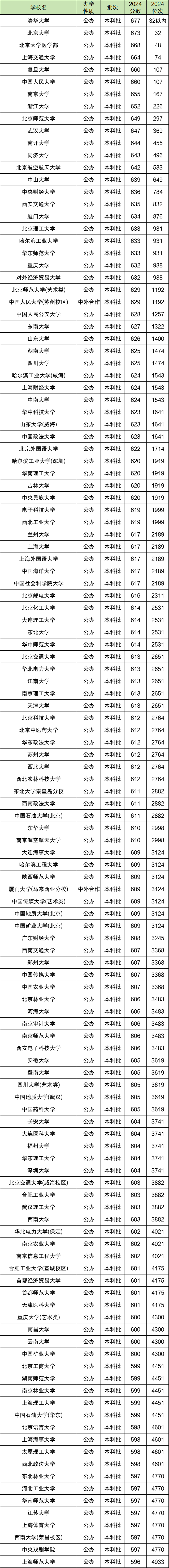 注:2024年排名对应大学仅为考生填报志愿的参考之一,填报志愿需要结合近三年的录取情况来分析,关于近三年更多的排名对应大学名单可以在文章末尾查询。