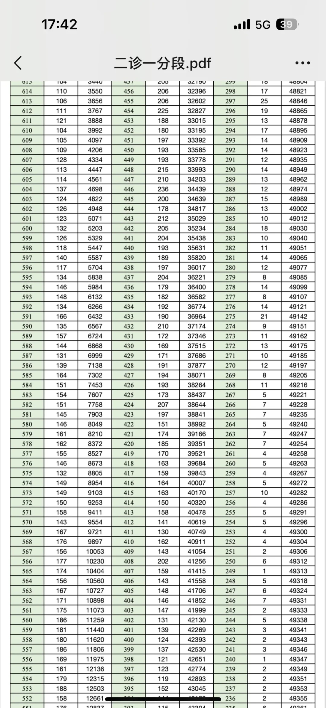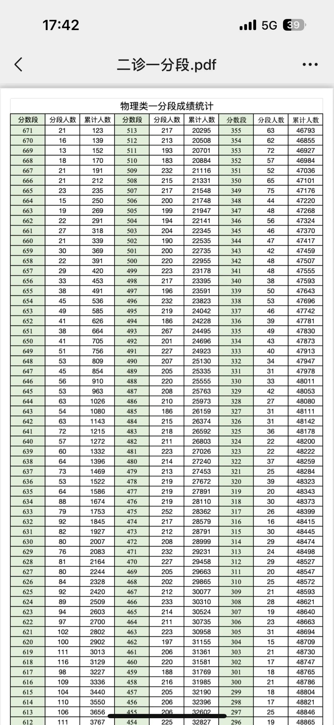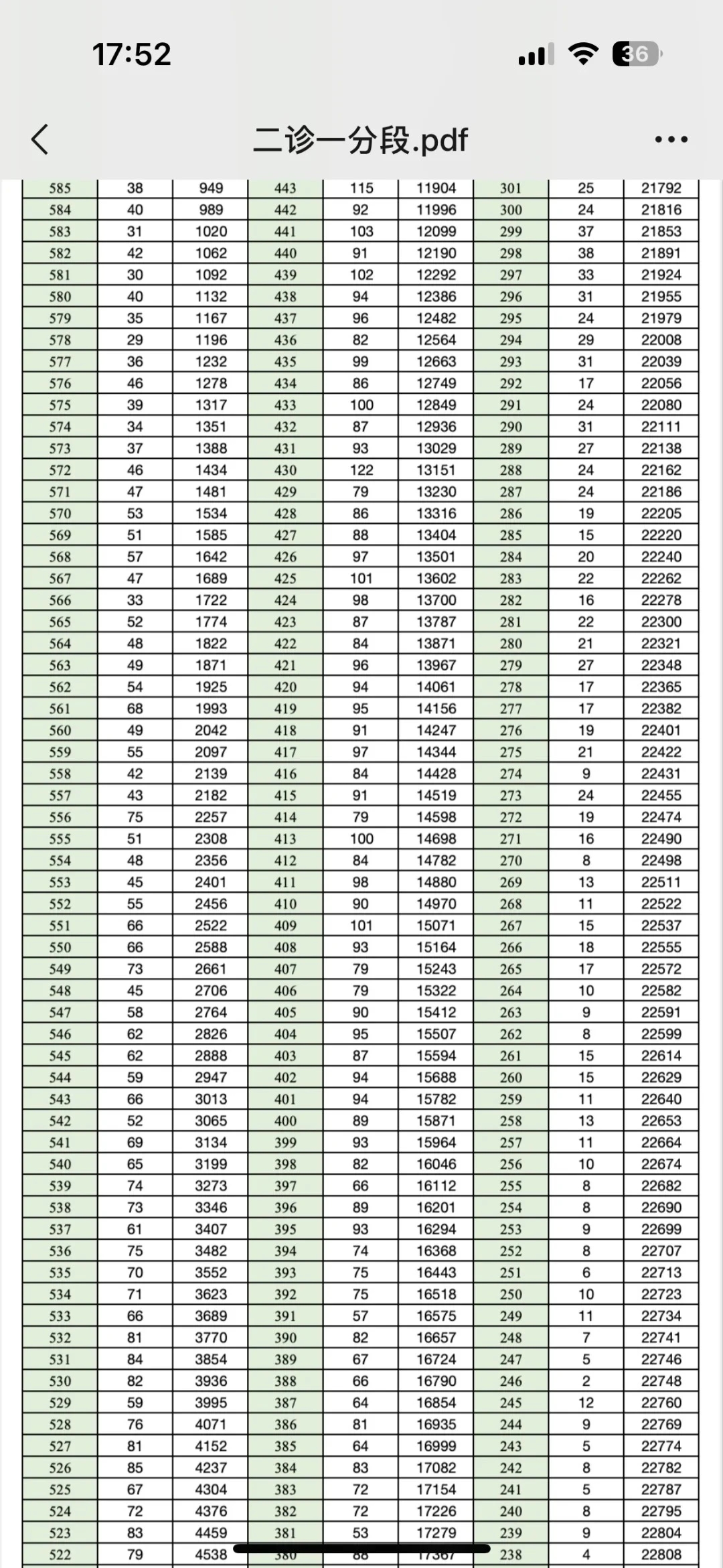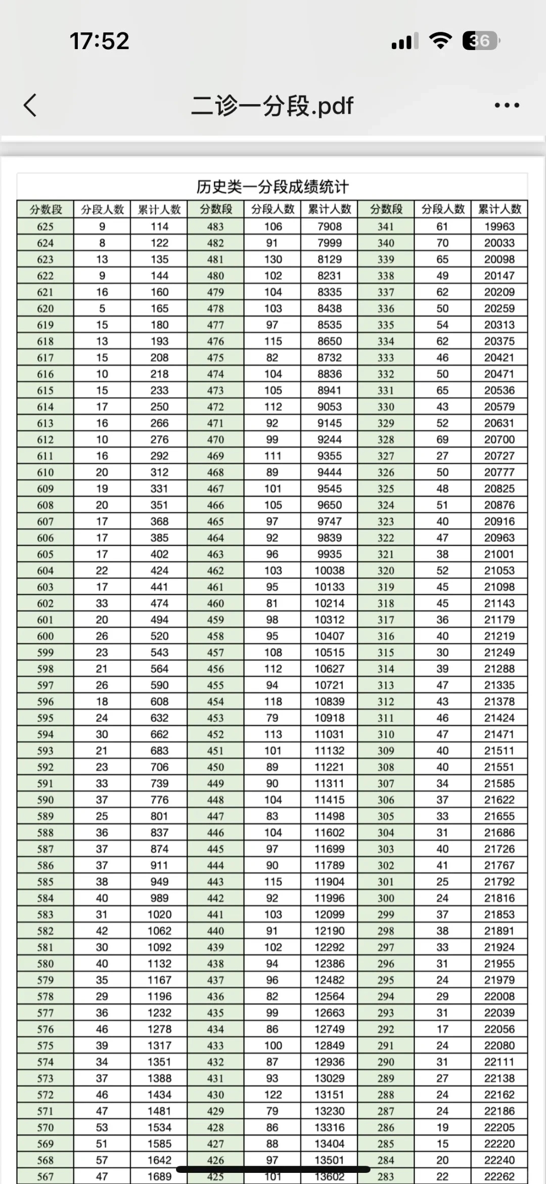 二、2025成都二诊一分一段表