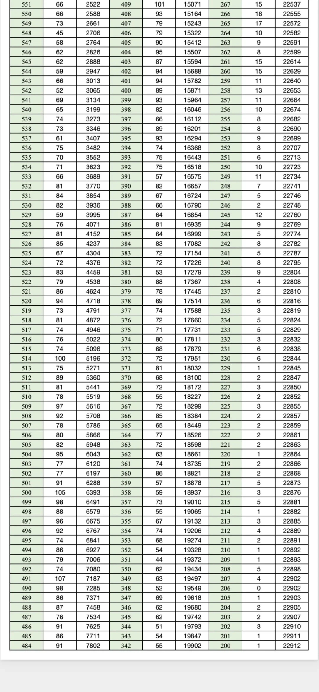 成绩对应的位次排名情况详见下文。