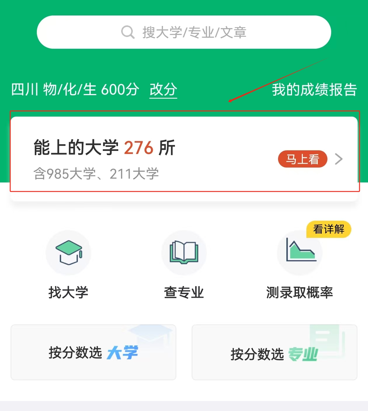 下面让我们来看看具体如何操作,能够免费输入分数测一测自己能上哪所大学,步骤如下:
