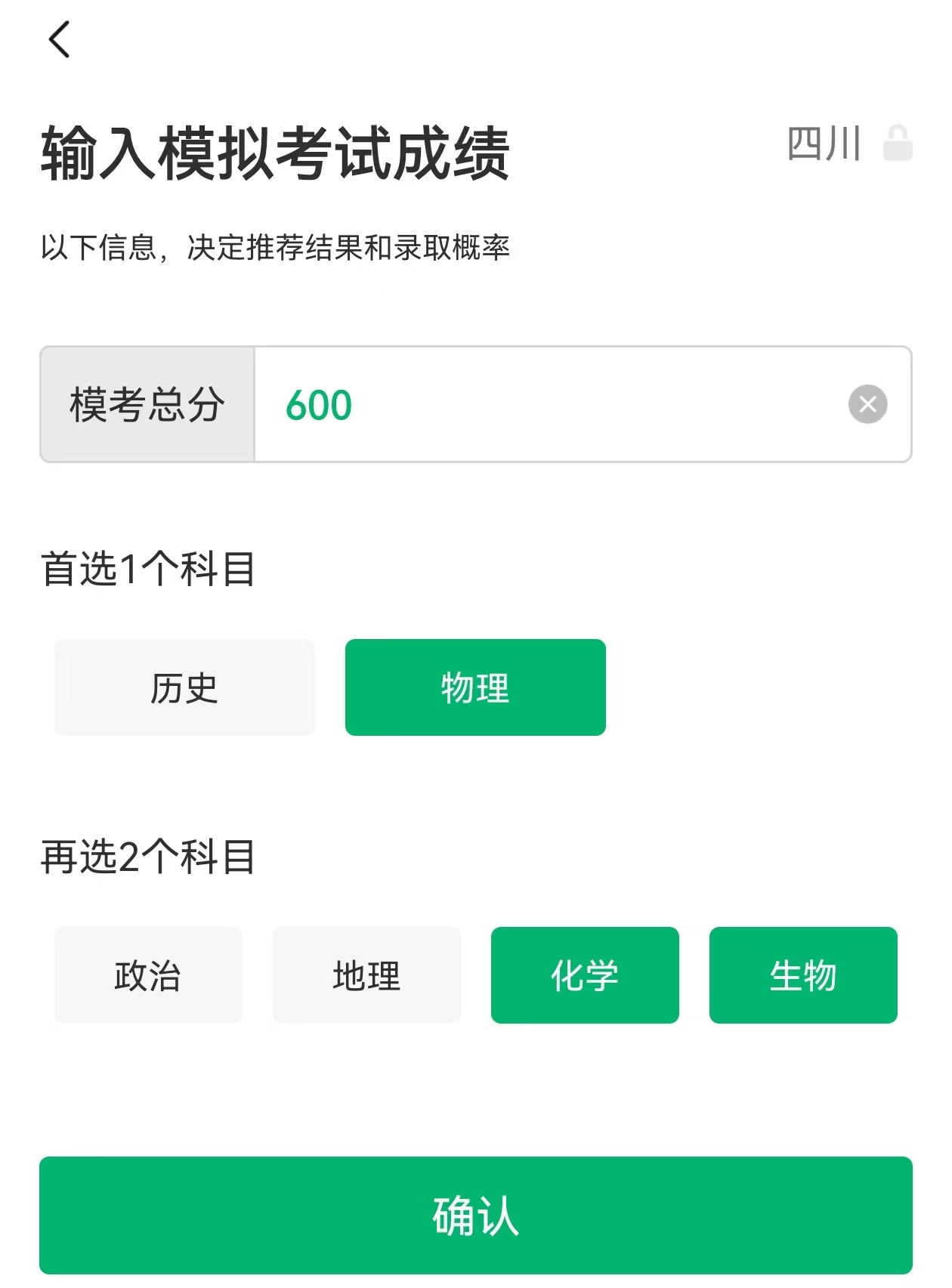2、以四川省600分的物化生考生为例,需要在下载好的圆梦志愿APP中,输入自己的分数、地区、选考科目,输入分数之后,返回主页面,此时主页上便有圆梦志愿经过大数据和云计算的科学分析为考生们整理汇总的能上的院校,点击即可查看。