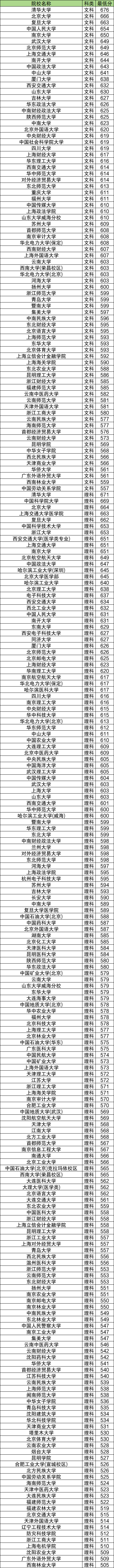 下面是云南省国家专项录取分数线文理科汇总表: