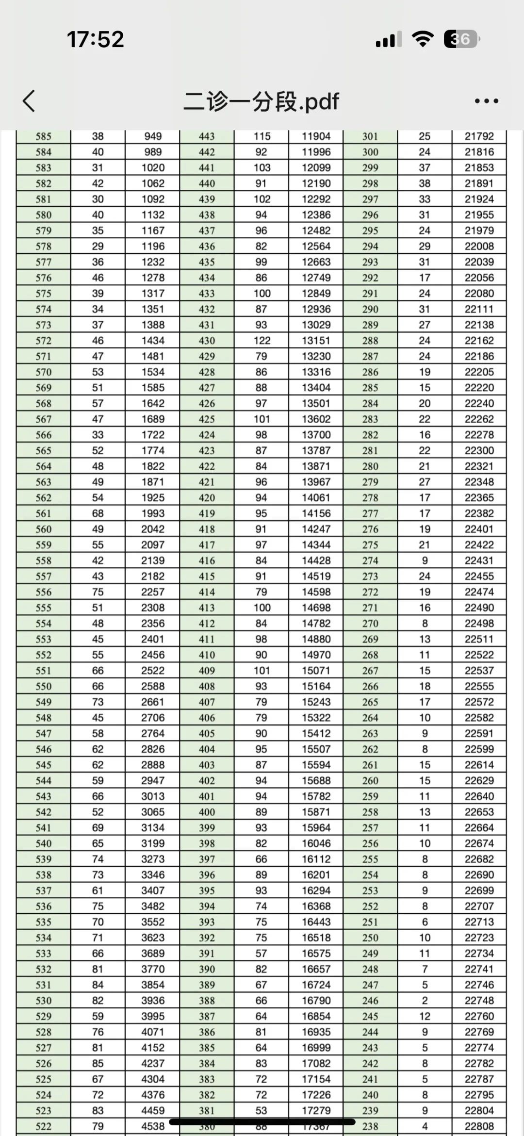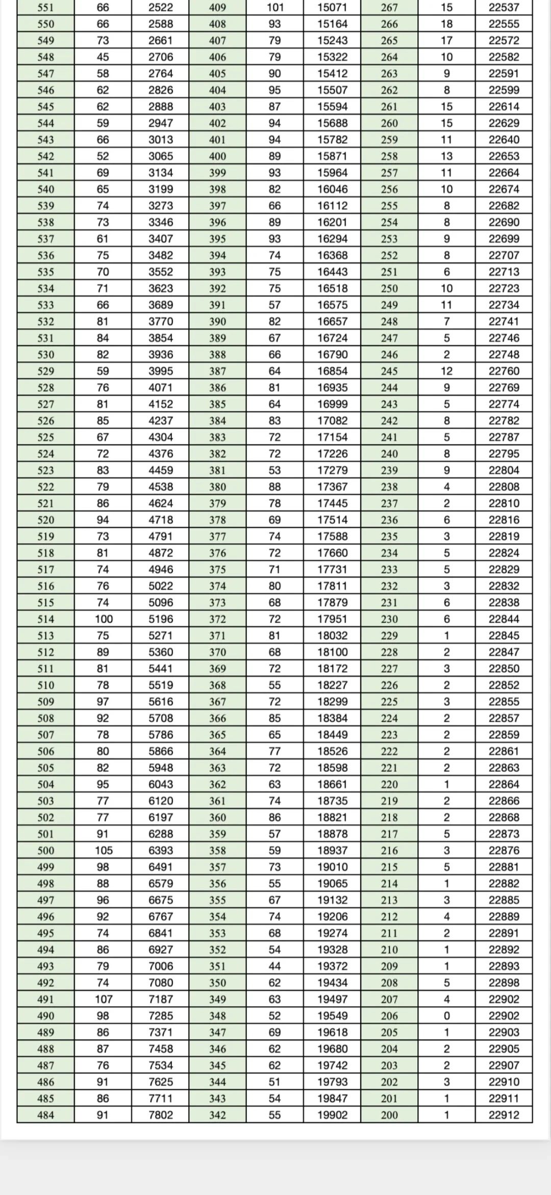 一分一段表是考试院根据考生总分从高到低排序,统计每一分数段累计人数的表格。通过该表,考生可明确自身位次,判断与目标院校的差距,例如: