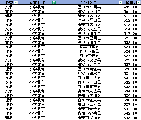 2024年成都师范学院公费师范生最低分:文科496分,定向宜宾市南溪区;理科495分,定向广元市昭化区。