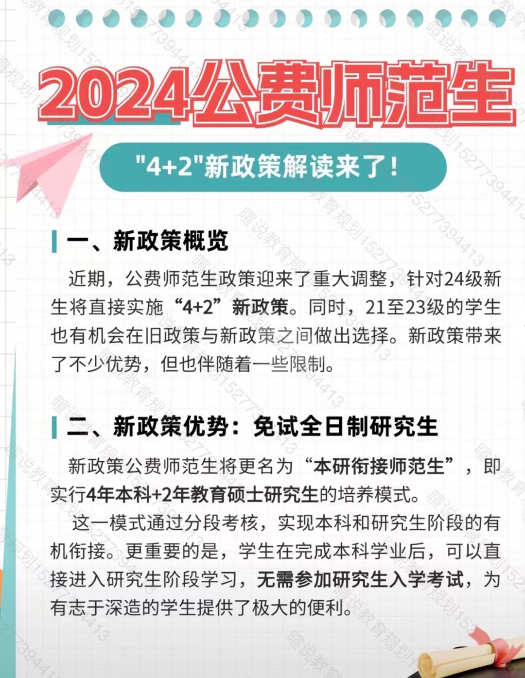 2025年公费师范生实行本硕连读,也就是“4+2”政策。此外21级和23级的学生也有机会在旧政策和新政策之间做出选择。新政策既有优势也有限制,本期文章老师将带来公费师范生最新政策解读,一起来了解下吧。