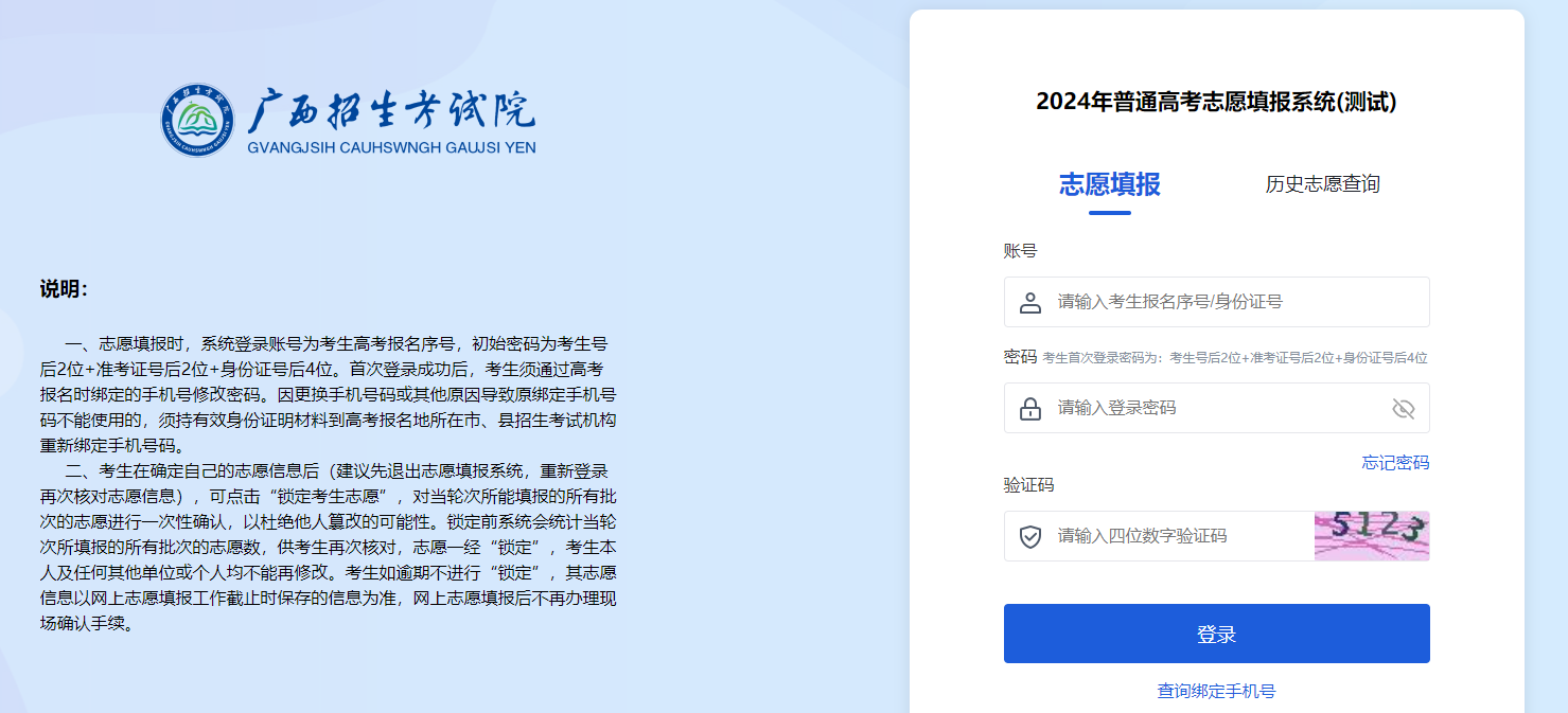 2)在系统首页找到“志愿填报”栏目,根据广西2024届新高考志愿设置批次依次进行填报。