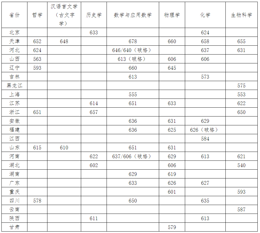 北京:数学类640分、物理学类631分。