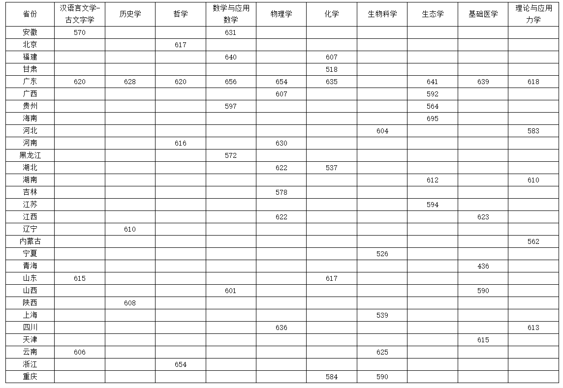 北京:数字与应用数学专业602分、化学专业591分。