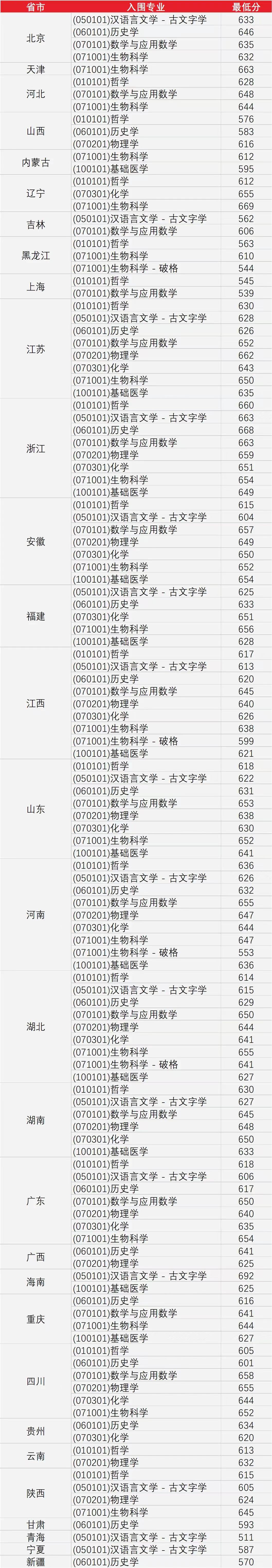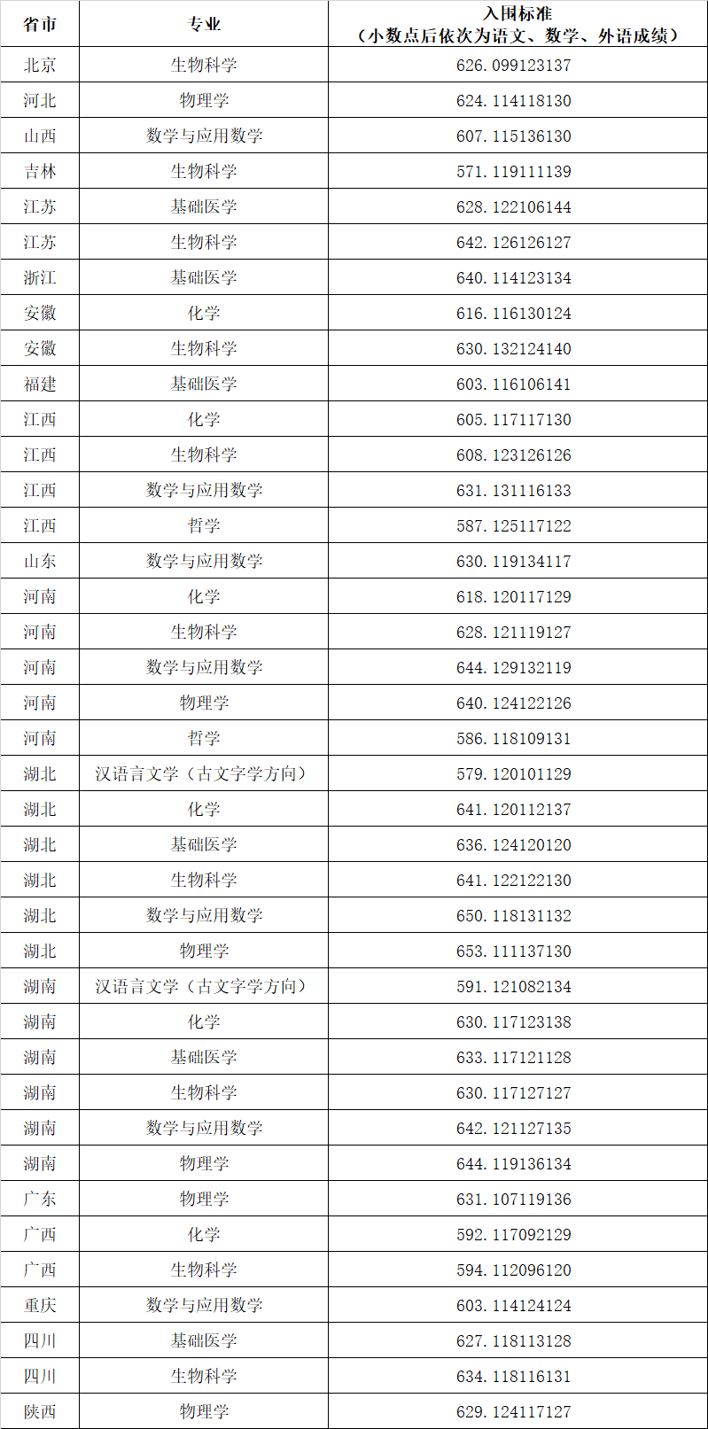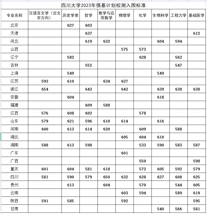 二、2023强基计划入围分数线
