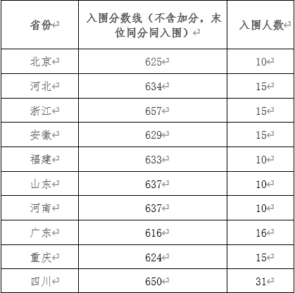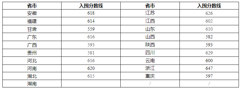 | 省份 | 入围分数线 |