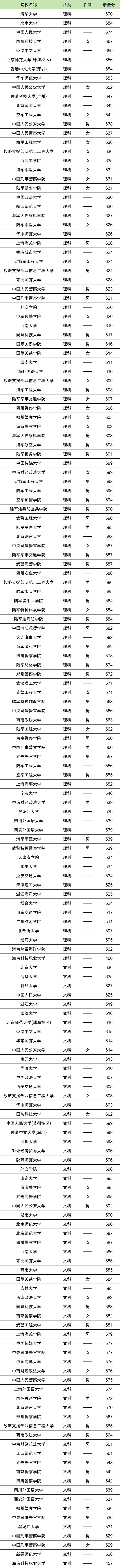 (3)海军大连舰艇学院:理科男生603分、女生627分