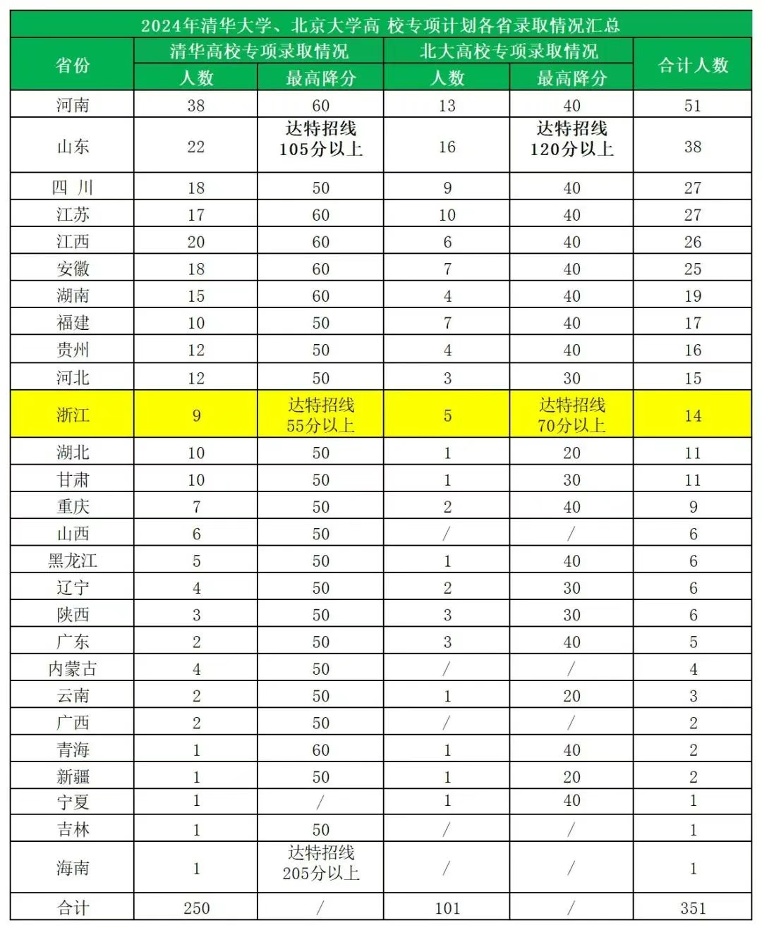 以下是2024年清华、北大高校专项计划各省录取分数要求汇总: